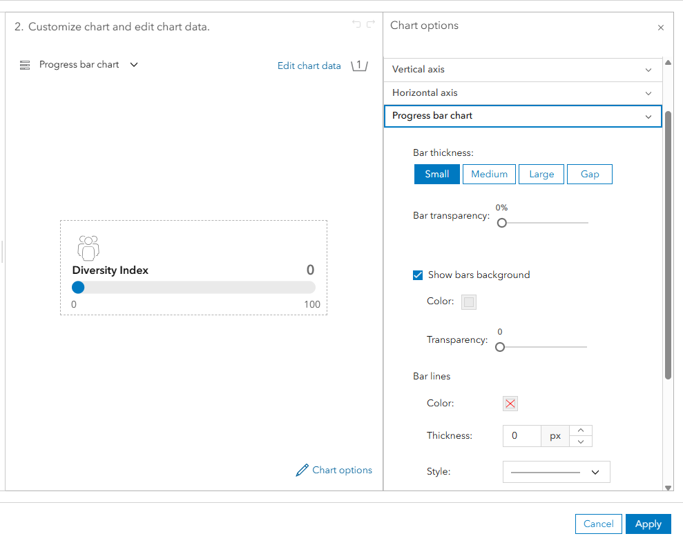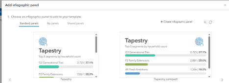When building infographics, the Tapestry panel has been redesigned and modernized, and you have options between viewing a large and compact version of the panel, making it easier to replace the Tapestry panel in migrated custom infographics.
