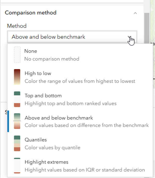 Select comparison methods such as high to low, top and bottom, quantiles, standard deviation, and outlier highlighting.