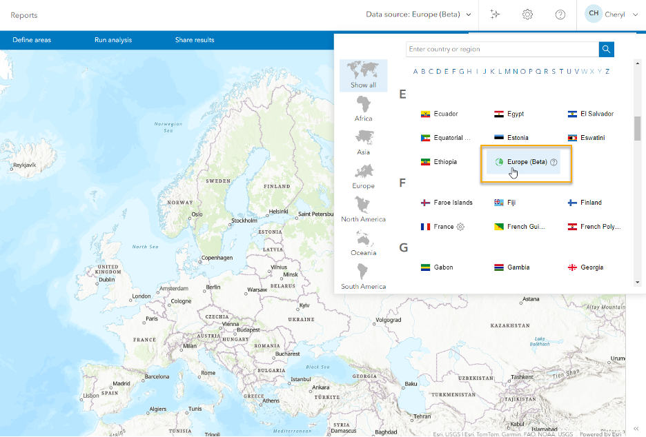 Looking to conduct cross-border analysis? Good news, the Europe (Beta) data source has now been introduced! This dataset covers 39 countries and can be used for mapping, running reports, and performing analyses that span country borders. This new cross-border dataset is available for use in popular workflows using hexagons or standard geographies. You can access this new dataset in the Data source drop-down menu.