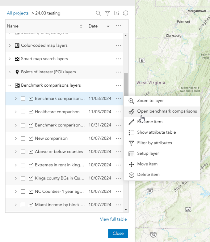 Do you have a favorite or frequently used benchmark comparison? Great news! You can now save variables and site layers for future reuse to streamline your work. Saved layers can be found in the project contents, in the section for Benchmark comparisons layers.