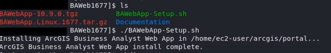 The BA web app can be installed on the machine with the enterprise portal. The setup is very simple and is run with the BAWebApp-Setup.sh script. There are no additional parameters required for the installation, for example: