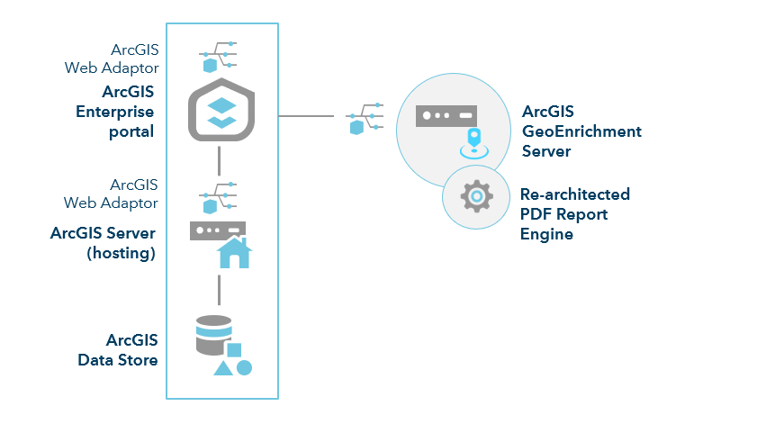 We’ll provide a high-level overview of how the system is configured. For reference, the full setup guide is here. This overview assumes that a base deployment of ArcGIS Enterprise 10.9 (Linux) is already in place. Not covered here are other administrative tasks such as licensing and provisioning or creation of other location services such as geocoding and routing. This overview will highlight the two main setups for ArcGIS GeoEnrichment server and ArcGIS Business Analyst Web app and how the experience is different from Windows.