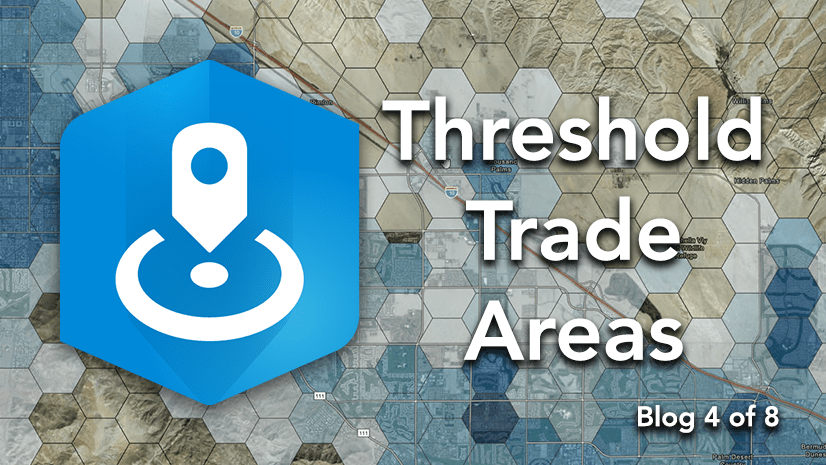 In ArcGIS Business Analyst, the Threshold Areas workflow creates criteria-based trade areas that expand outward from a point location until the coverage meets a defined limit. For example, you can create a ring around a location that covers 10,000 housing units or a drive time that includes $100,000 of food & beverage store sales.