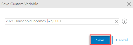- Leave the default variable name, Household Incomes $75,000+ and click Save.