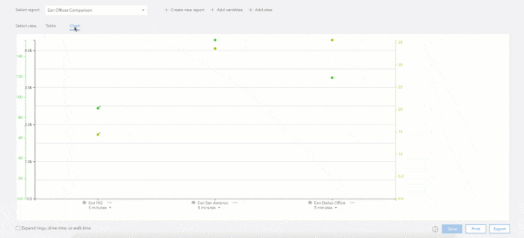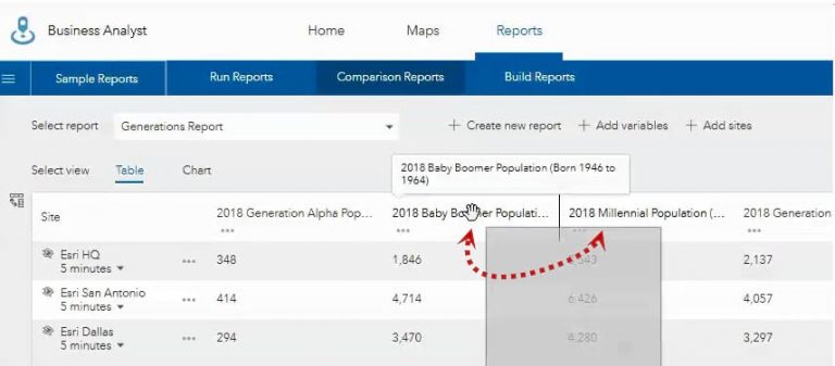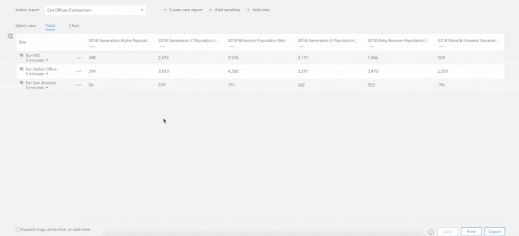 Once you’ve created your report, you can customize it the way you want it to be. Interactively organize the layout of the report by rearranging columns and rows in the order you desire, add and delete sites or variables, change chart colors, define a benchmark site and compare sites with neighboring geographies. Getting the report layout, you want is much easier in New Comparison Reports than in the old workflow where you had to go back and forth.