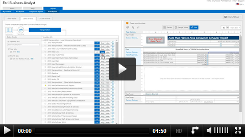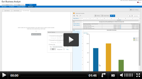 Executives at Acme are streamlining their site portfolios so that site information is easy to find and not buried deeply in pages of reports. They’ve asked for a custom report that includes automotive expenditures and demographics. Watch how to combine sections from different reports to create a customized Acme report.