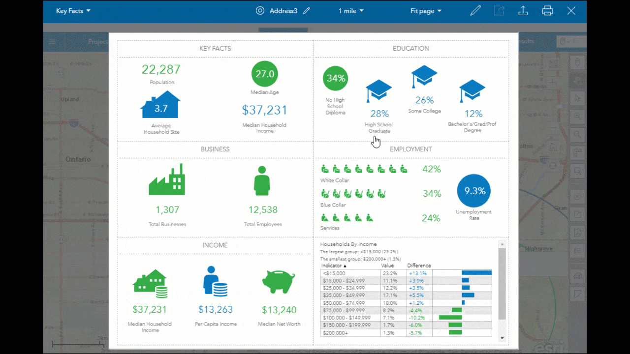 The newest release of ArcGIS Business Analyst Web and Mobile Apps is here! This includes several enhancements to the Web App including saving the current map state, improved Business and Facilities Search, side by side infographics comparison, and new color code mapping styles. The Mobile App now supports panoramic and 360 degree images.