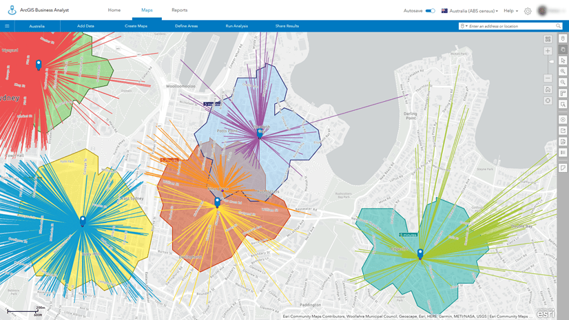 Let’s dig into what this means in practice. I previously created a project in Business Analyst Web App that contains two geography sites in the Esri 2021 data source:
