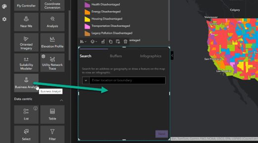 - Drag the Business Analyst widget below the legend widget in the sidebar.