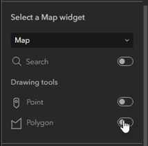 - Select the web map and the Map widget will populate with selected content.