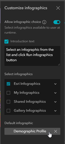 - Under Default infographic, click Select and pick the default infographic that will be available for your users when running the app.
