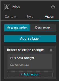 - Select the map widget on the canvas to activate it and click on the Action tab