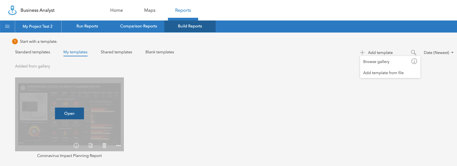Once the template is added from the gallery, on the “My templates” tab click to “Open” the template to make edits: