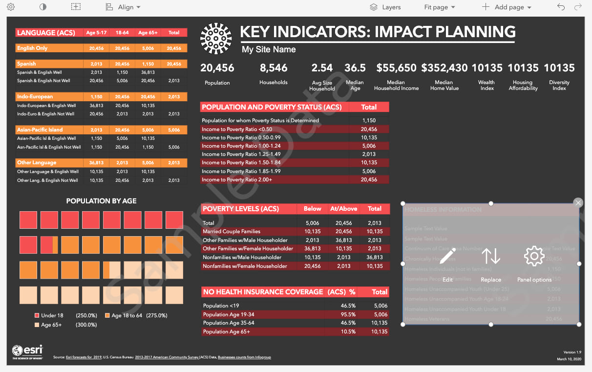 In this follow-up blog, I am going to explain how I customized an infographic in the ArcGIS Business Analyst Web App with additional content from the ArcGIS Living Atlas of the World. This can be used as a model for adding other content from your own organization to create compelling and interactive infographics.