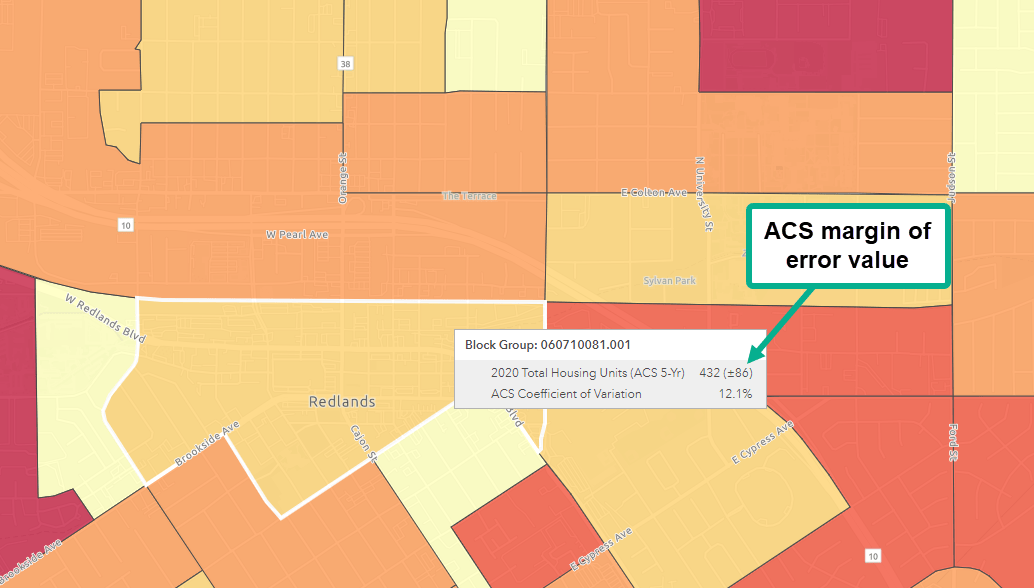See Living Atlas’s blog article, The Importance of Margins of Error and Mapping, which features in-depth information on margins of error for more information.