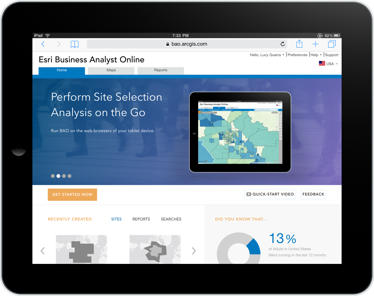 - Access the Business Analyst web app on your tablet device and create color-coded maps, hand-draw sites, identify businesses, and more… all from the field on your tablet.