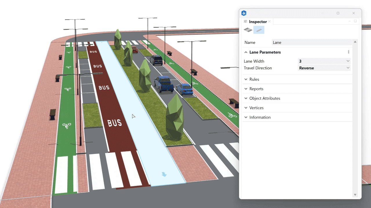 Once we apply the desired rule to the lane shape, we can start adjusting attributes in the Inspector panel.