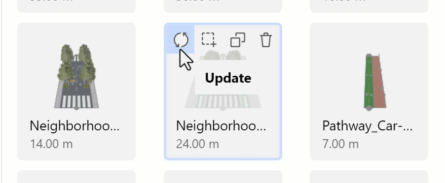 If you delete a street configuration that is being used for segments in the scene, don’t worry! The connection with the street configuration will be lost, but the appearance of the segments won’t be affected.
