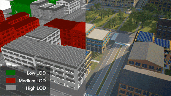 The Unreal Datasmith exporter now supports level of details (LOD) driven by CGA rule attributes. When your CGA rule supports LODs, such as in the Redlands Redevelopment example, you can now automatically export them to Unreal without additional steps. Using LODs in Unreal can significantly improve rendering speed as well as quality.