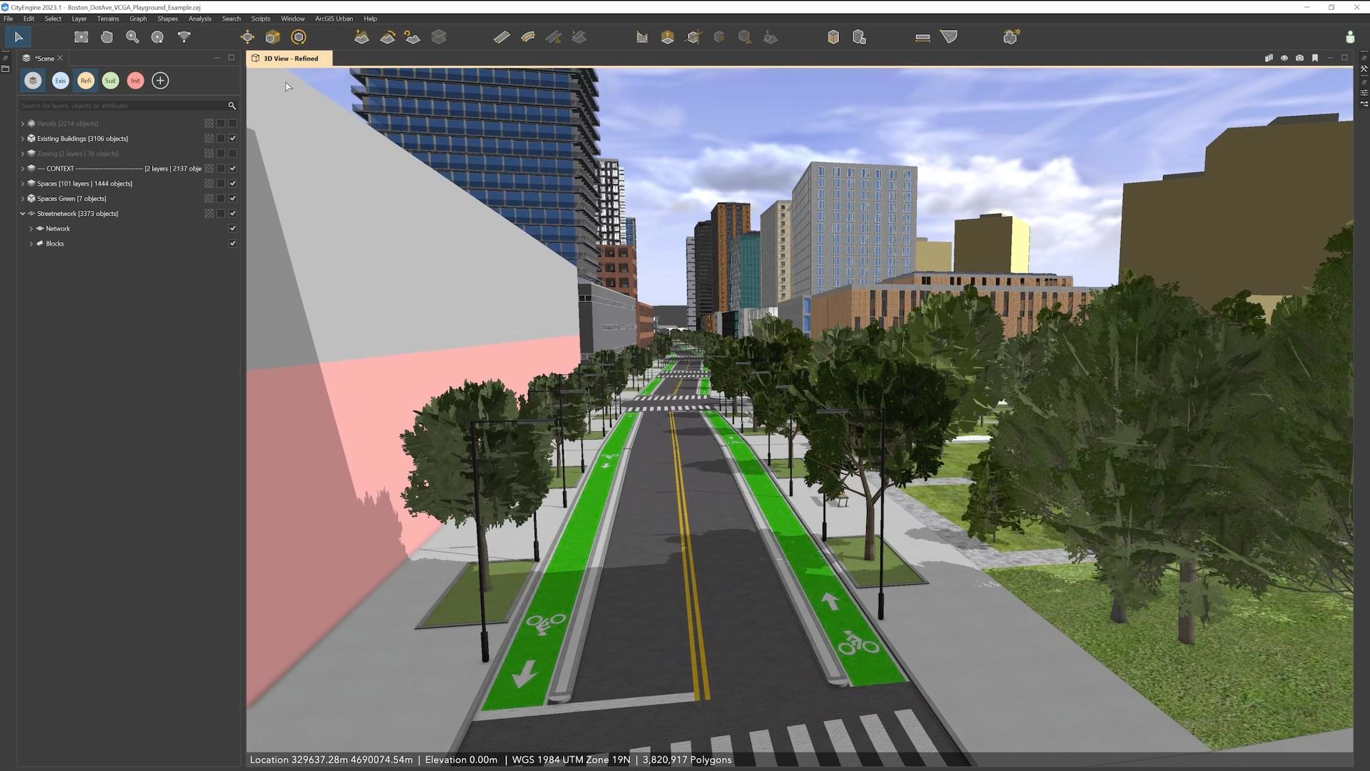 To convey intended changes in a city, it is vital to visualize urban designs in a realistic and dynamic way. This technical article demonstrates how to export ArcGIS CityEngine urban designs to Twinmotion, and how to improve their visual quality by using Twinmotion’s high-quality asset library and its animation tools. With this workflow, you can produce high-quality image renderings and videos, and present them to customers or the public.
