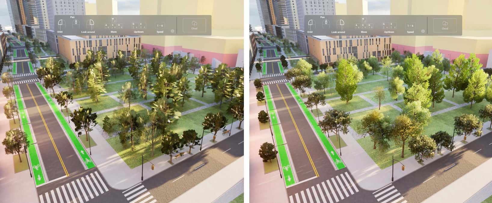 Figure 7 shows the result of replacing original CityEngine tree models in a park with Twinmotion library trees.
