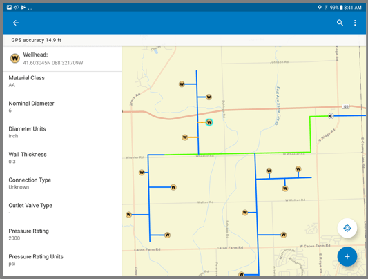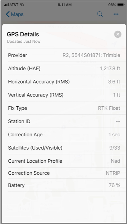 GPS detail enhancements include viewing satellite information when acquiring your initial fix, displaying the current locations’ altitude, and when connected to Trimble receivers we can now monitor battery levels.