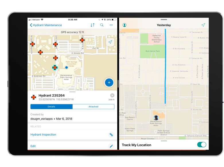 Split view and slide over can be extremely useful with Esri Field Apps like Explorer for ArcGIS (which supports it today), the soon to be released Tracker for ArcGIS app, and non-Esri apps like Mail, Apple Maps, and Esri partner apps like Bad Elf GPS that provide additional metadata when paired with their receiver.