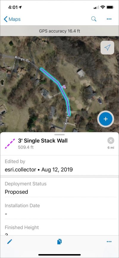 Here’s an example of a line captured in Collector with some basic attribution to define the key characteristics of our sandbag wall.
