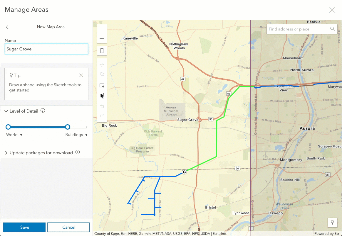 If other tiled layers are present in the map (as basemap or operational layers) the polygon sketch won’t be available, and you’ll need to use an extent rectangle to define your offline area.