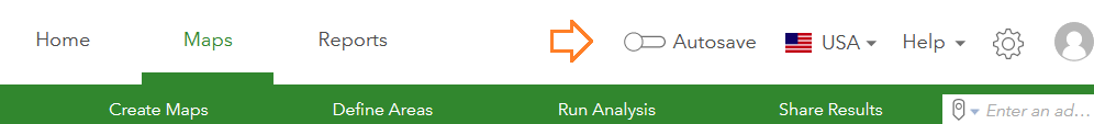 Most of us have sometimes had to stop in the middle of doing an analysis in Community Analyst and turn our attention to something else. Perhaps you created a business search results layer, and then spent some time using the Web Maps and Layers workflow to add other layers from ArcGIS Online. Just when you were ready to launch Suitability Analysis, you were interrupted and had to shelve it for later. When you sign in again, wouldn’t it be nice if you did not need to spend time identifying and reloading all your sites and layers? That is, simply continue working on your project where you had left off? Now you can! Introducing the Autosave toggle – just turn the toggle on, and the state of your map will be saved when you log out or close your browser. The next time you sign in, you will be directed straight to the map with everything open just as it was when you ended your previous session.