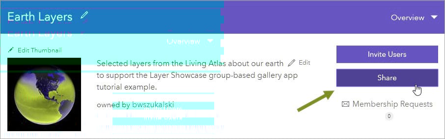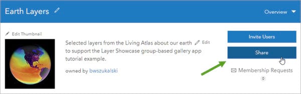 Step 1 – Create a group, and add the layers you want to use to the group. Ensure that the layers include a complete description, and have a good thumbnail.