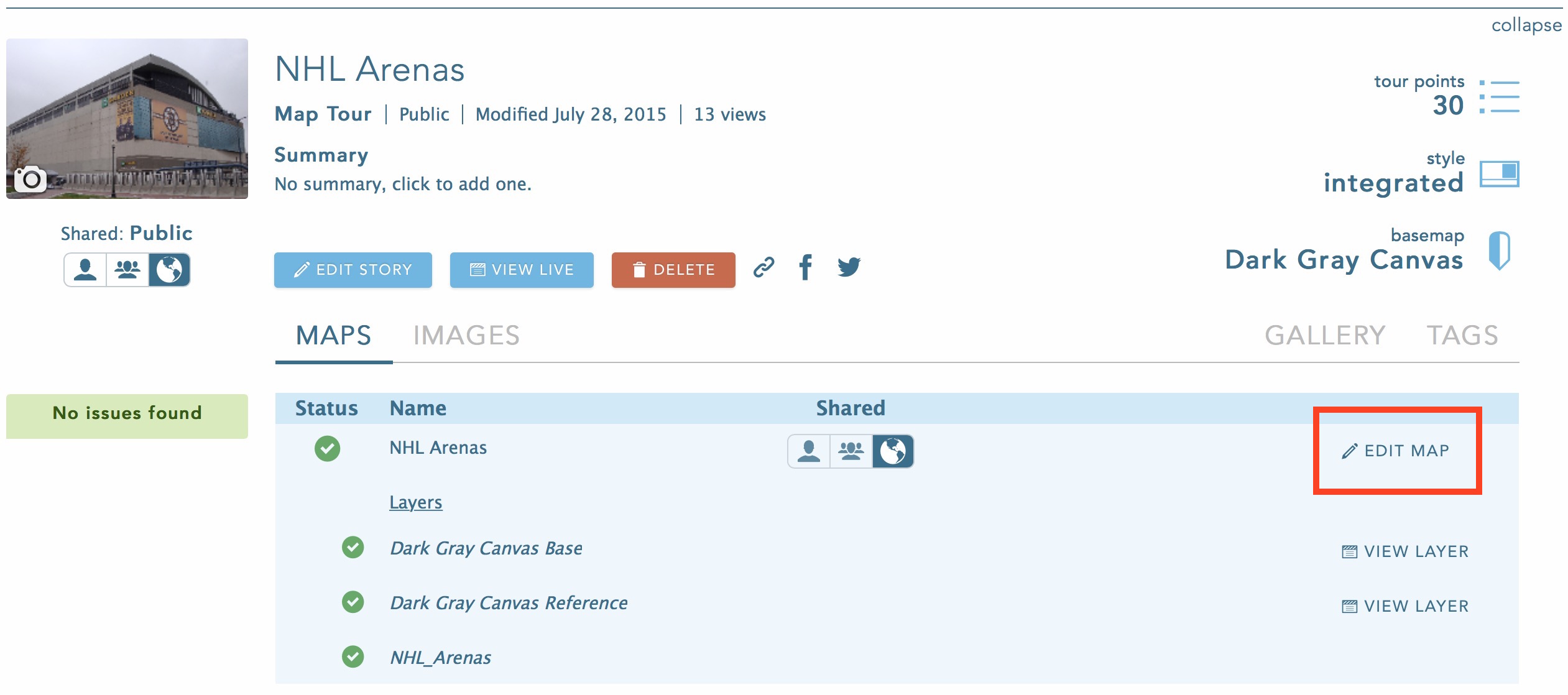 You can always open and modify the web map from your My Content page on ArcGIS.com, but My Stories makes it easy to find the right web map.