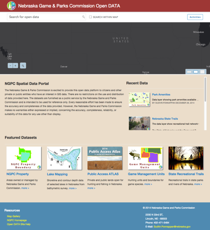 Globally, there are currently 1,542 organizations making their data open with the ArcGIS Platform, and this number continues to grow. Within these organizations we see a range of types: all levels of government, non-profits, educational institutions, events, and more. While some governments have created federated sites across the internal departments and commissions, others have individual sites for individual overseeing bodies— today we’ll look at Nebraska Game & Parks Commission Open Data.