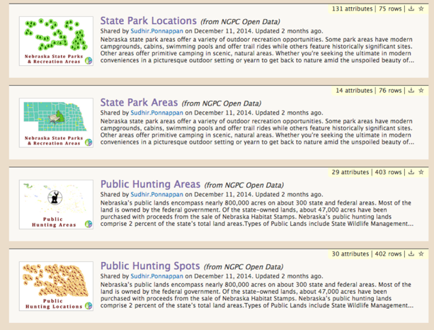 There are over 50 high quality datasets ready for Nebraskans to discover and use to answer their questions about the state’s fish, wildlife, park, and outdoor recreation areas. All these spatial and non-spatial datasets are carefully crafted to be authoritative, informative, and user friendly.