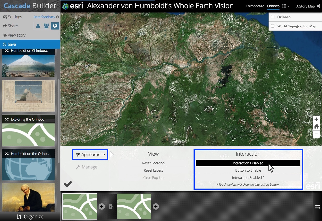 Configuring how media items (particularly maps and scenes) are displayed in your story is a critical storytelling feature of Esri’s Story Map apps. This helps elevate your work from “a story with maps in it” to an integrated work where the maps truly support the narrative – a true story map.