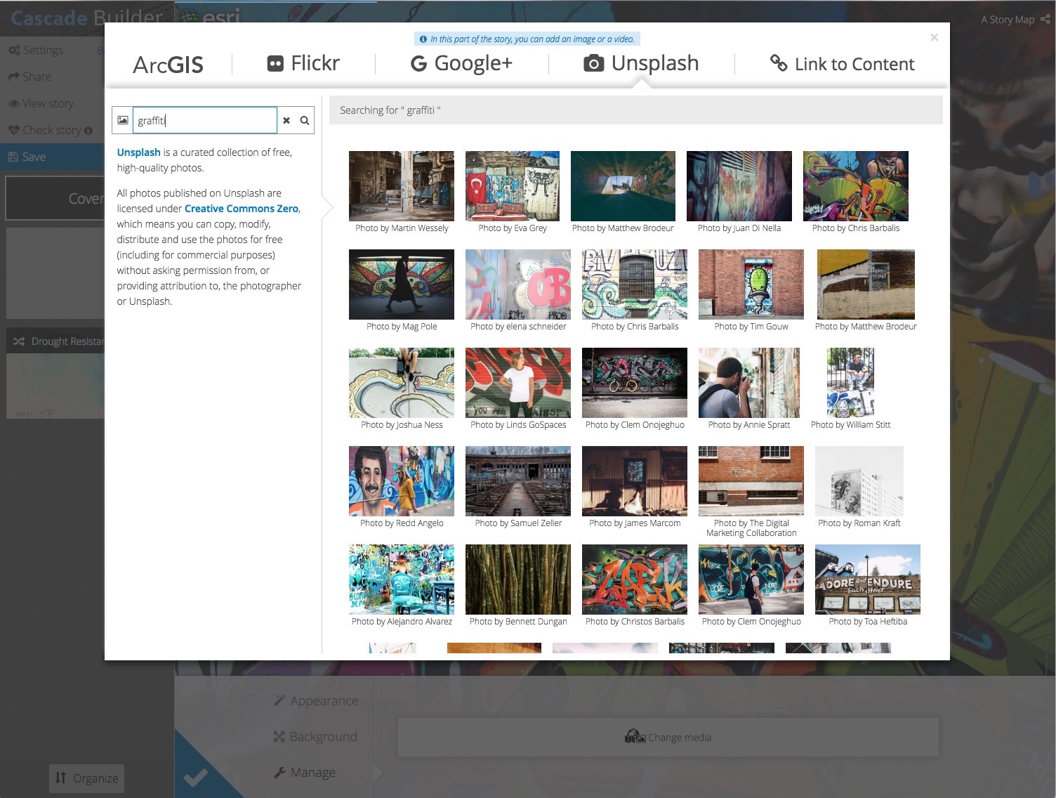 Stunning photos can help your story make an impactful first impression and grab your audience’s attention, but sometimes you just don’t have the right image. In addition to the option to search Flickr for public photos, you can now also search the curated web collection Unsplash for amazing stock photos.