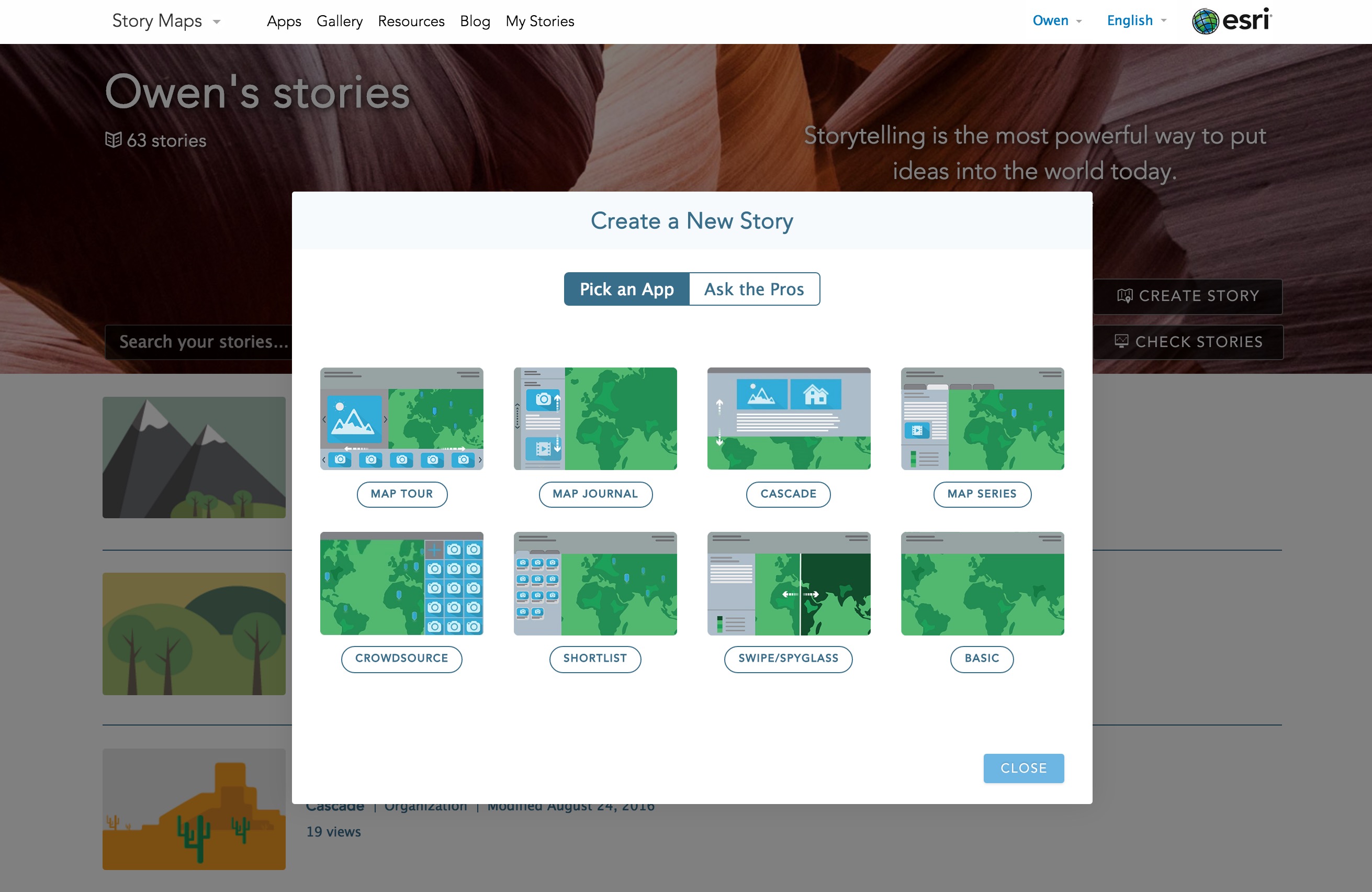 My Stories is a tool on the Story Maps website that checks your story maps for broken links and sharing issues and helps you fix them. All three beta Story Map apps (Cascade, Crowdsource, and Shortlist) are now included in My Stories.