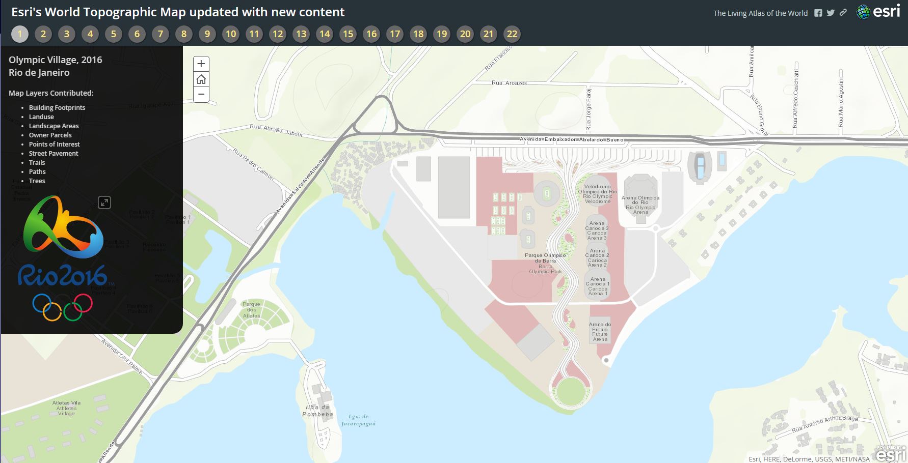 Just in time for the Esri User Conference, this World Topographic Map release includes new Community Map contributions for states, cities, counties, parks and facility sites across the United States and Canada. This release also includes the 2016 Olympic Village and supporting venues in Rio de Janeiro, and commercially-sourced updates for Israel and North America. Both the Olympic venues and commercially-sourced updates for North America were also added to our World Street Map.