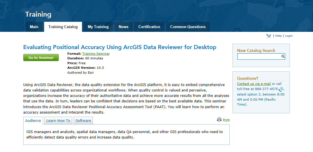 Every day, you make decisions based on the assumption that your GIS data is complete and accurate. The positional accuracy of this data is an important aspect in determining its fitness for use. The Data Reviewer team is pleased to announce the release of a new FREE training seminar that highlights how to identify spatial data that does not meet your requirements for positional accuracy.