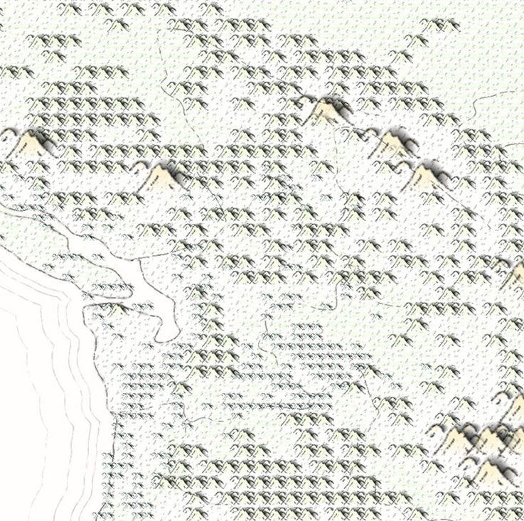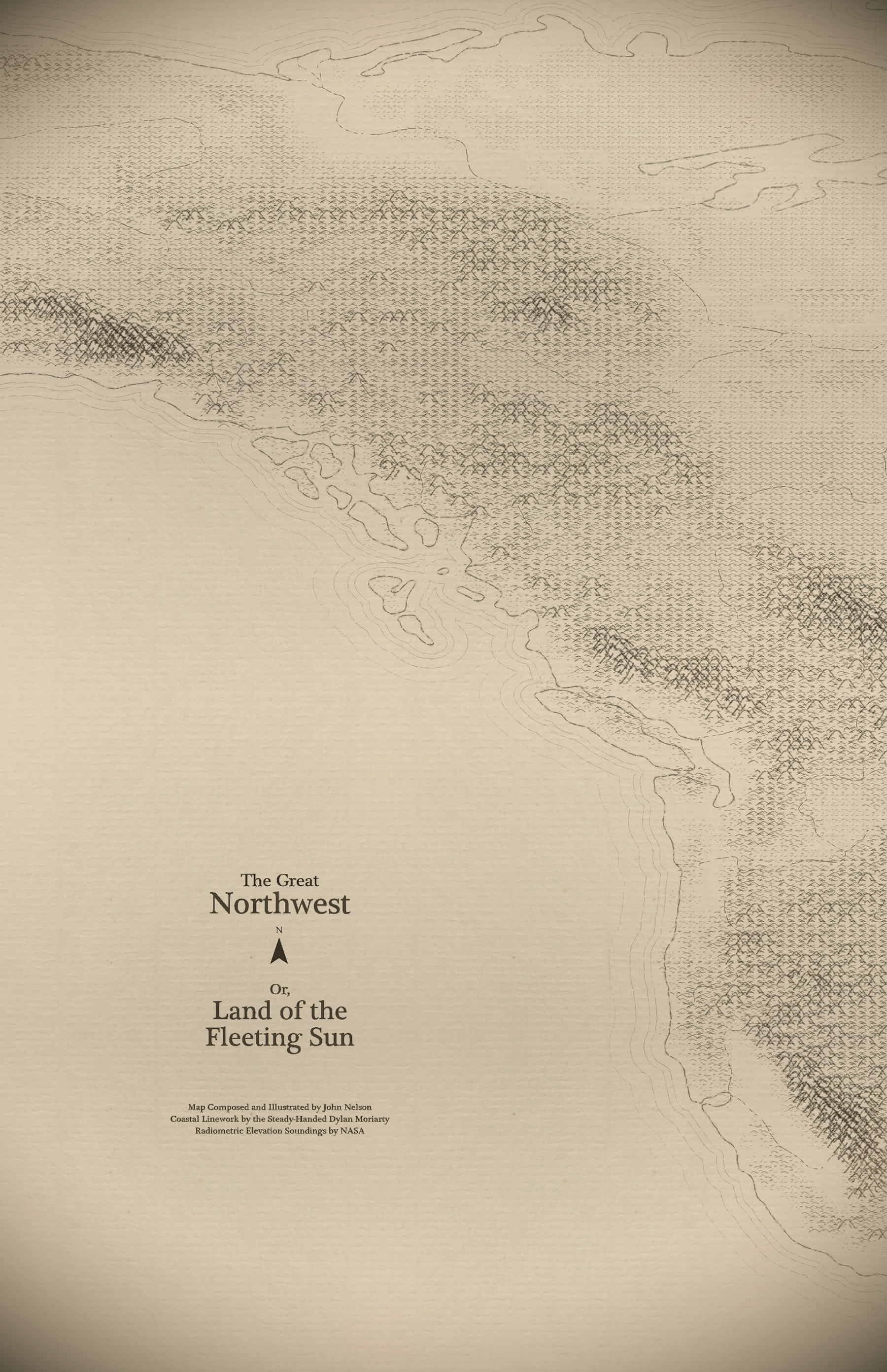 There are three things conspiring to make this map sort of look like (I think) a hand-drawn insert ripped out of a fantasy novel…