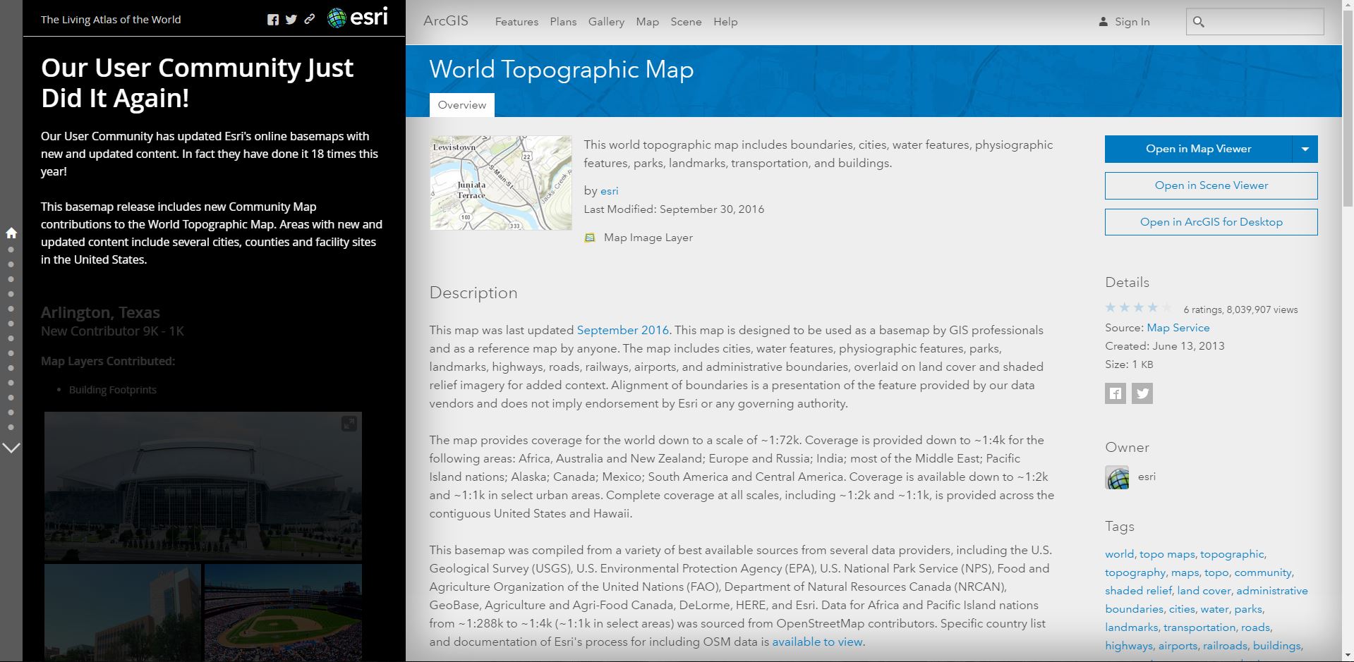 If you have other feedback or comments, please post them to the ArcGIS Online Discussion Group and the Living Atlas Discussion Group on GeoNet.