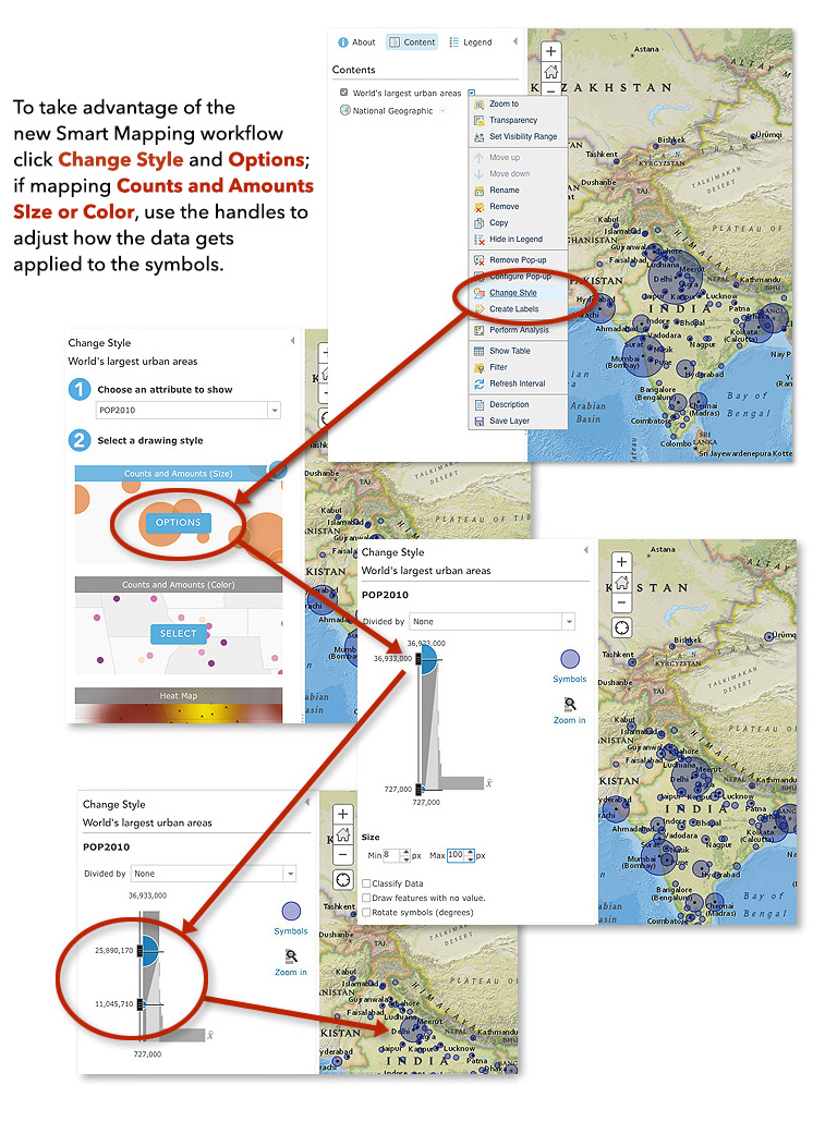 Whenever possible, Smart Mapping aims to offload work from the map author to the machine. The goal is not to take control away from the author, but rather, make informed, intelligent choices and partner with the map author so we can all work faster.