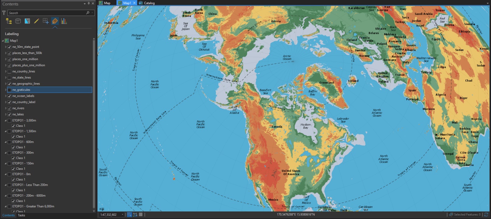 With the labeling properties buttoned up, we’re ready to get the full effect of this pull-down map style: changing the projection!