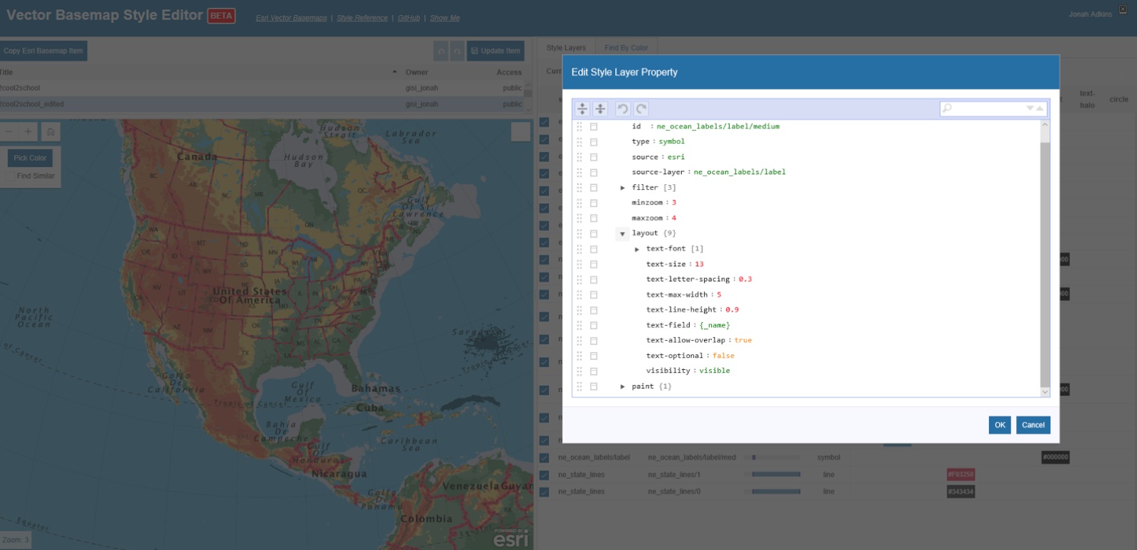 To adjust label text-wrapping, select your layer in the right panel of the Vector Basemap Style Editor’s layout section and add the two following properties: