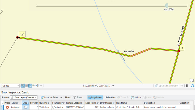In this release, you can now implement workflows that leverage the knowledge and expertise of subject matter experts in the evaluation of data quality. This includes the use of visual review techniques that identify missing, positionally inaccurate or miss-extracted features. You can now use this form of quality review for those features shared in web maps using tools in ArcGIS Pro 3.3 or a custom application that leverages the new Write Errors REST endpoint operation. Errors detected using this form of review are stored in a common error store along with errors detected using automated review workflows.