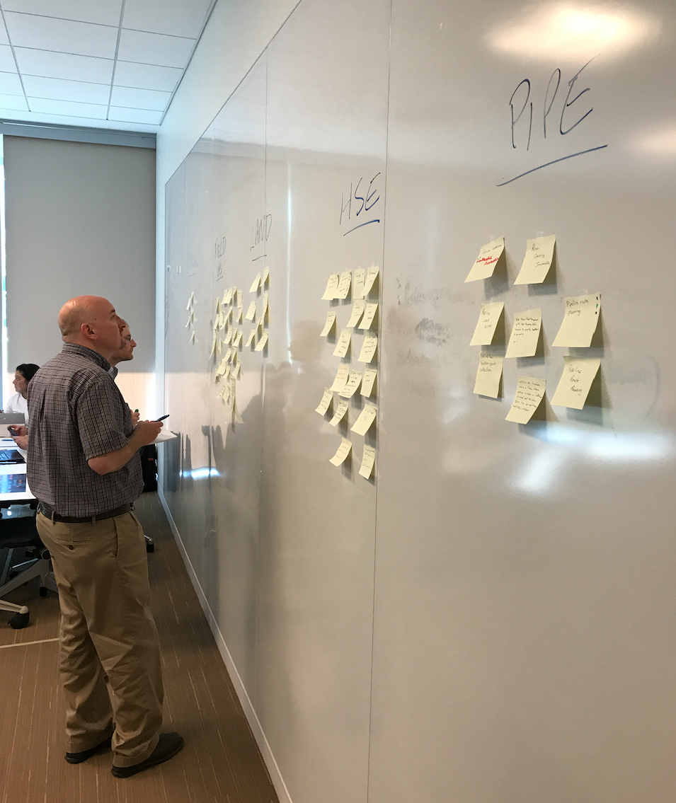 First – ask each participant to write down on a sticky note all of the field workflows that are important to them. Time this activity – roughly 10 minutes should suffice. Upon writing out the workflows have them place the sticky notes on a white board.