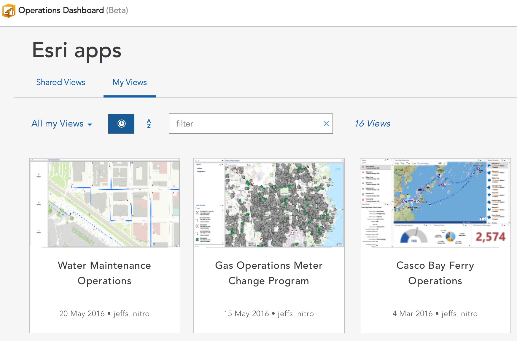 With our new experience, Operations Dashboard will be a destination within your ArcGIS organization. You will be able to see all of the Operation Views that you have created and that others have shared with you, search and find views within your organization, share the ones you have created and create new ones using your browser!! Yes that’s right, no need to download a Windows app anymore!!