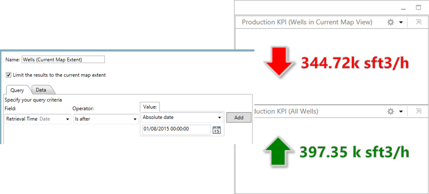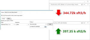 always been able to apply an attribute query as a filter but now you can combine that with a spatial filter (the current map extent). This lets you use widgets to compare data – like well production in the current map extent with all well production. Combined with an attribute filter you can do some pretty amazing visual analytics!