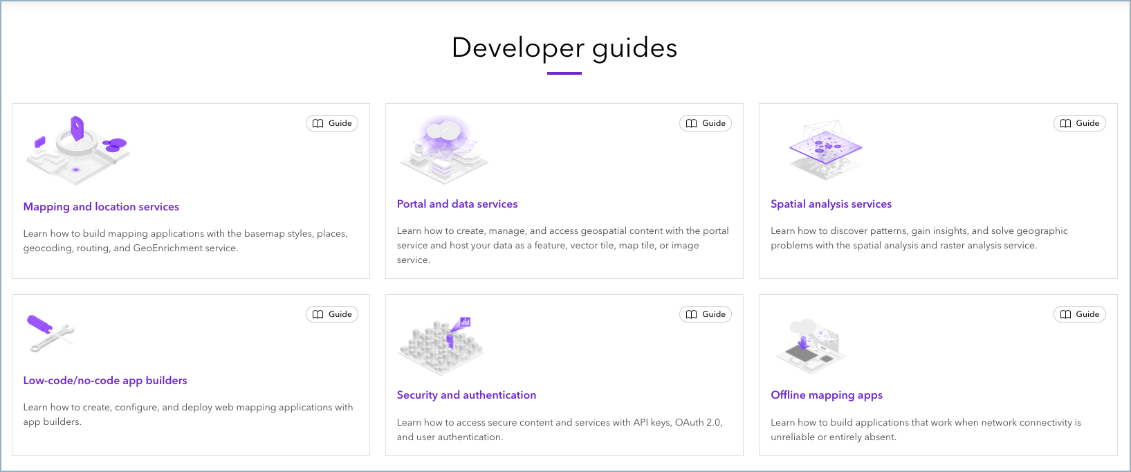 Announcing the new website experience for Esri developers! In this release, the website and guides have been updated to help developers building different types of applications find content faster and build applications more effectively.