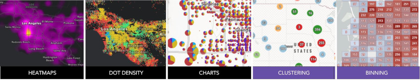 Beyond the feature-level renderers that style existing geometries, some renderers (such as heatmaps, dot density, and charts) visualize attributes using alternative geometric representations instead of the raw feature shapes.